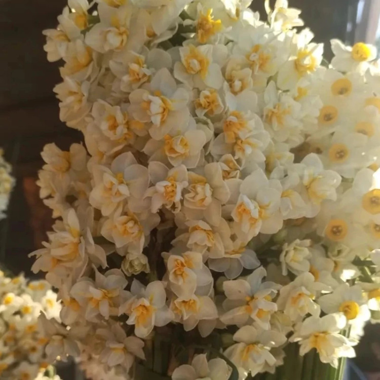 نرگس کاغذی (Paperwhite): گلهای ریزتر، خوشهای، سفید و خیلی خوشبو.